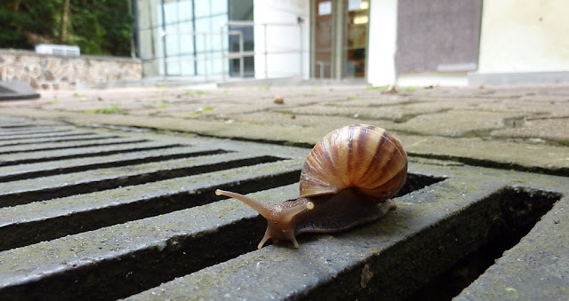 We couldn't leave with snails on a plate. So here's a picture of a woodlouse on a snail on a snail. Just because.